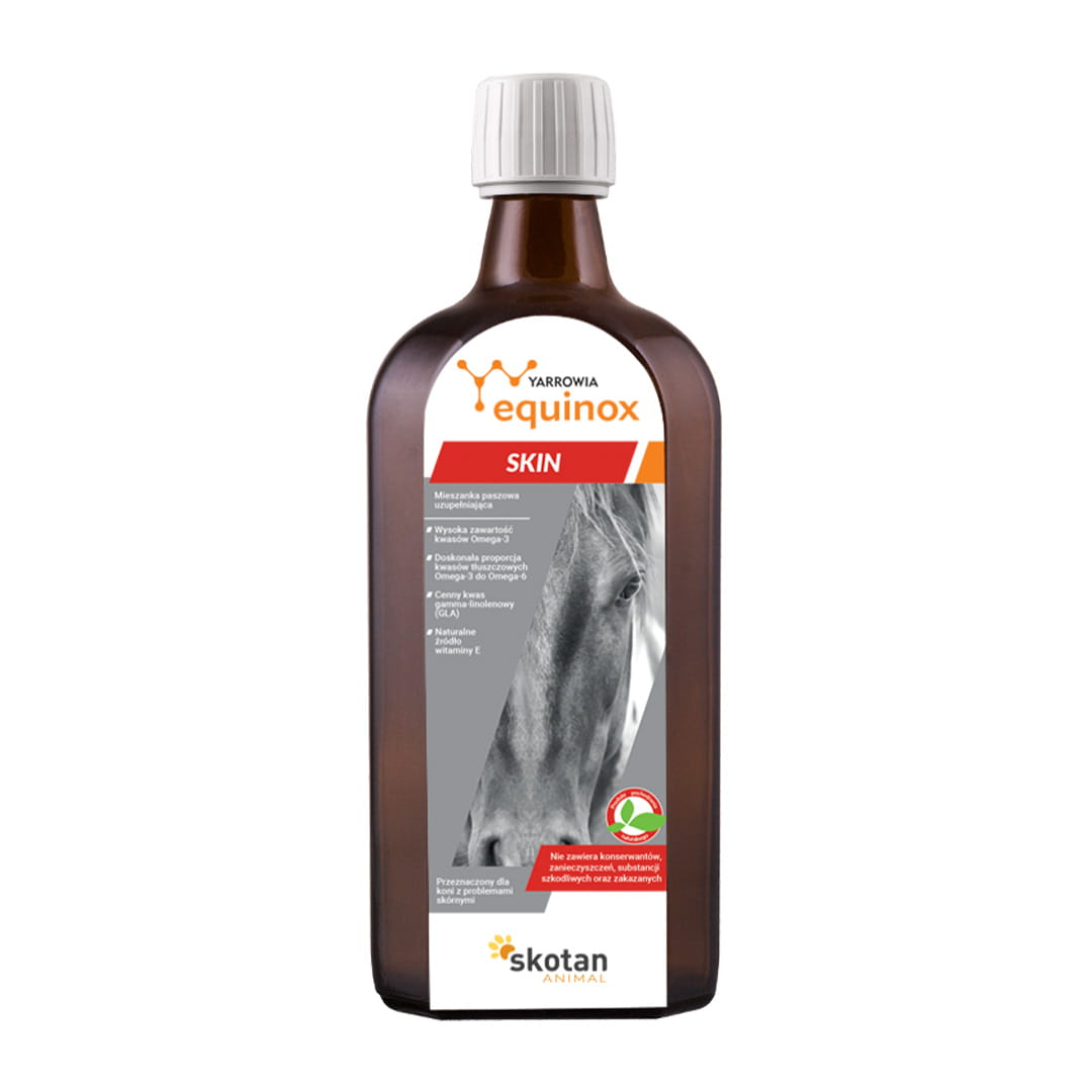 Equinox Skin enthält eine Mischung aus kaltgepressten pflanzlichen Ölen, die reich an Omega-3-, -6- und -9-Fettsäuren sind. Die speziell auf Pferde zugeschnittene Formulierung enthält Leinöl, Nachtkerzenöl, Borretschöl und Johannisbeersamenöl. Diese Inhaltsstoffe werden vom Körper des Pferdes leicht aufgenommen und sorgen für eine wirksame Pflege von Haut und Haarkleid.