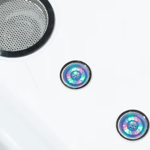 4. Chromotherapie: Die LED-Leuchten am Boden der Wanne wechseln automatisch die Farbe. Sie können mit der Taste "Licht" auf dem Bedienfeld ein- und ausgeschaltet werden.