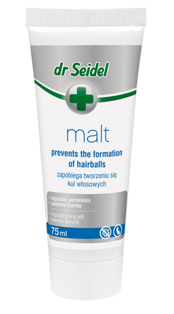 Dr. Seidel MALT ist eine abschwellende Paste. Es handelt sich um ein Spezialprodukt zur Pflege des Verdauungssystems von Katzen. MALT-Paste wurde entwickelt, um Flusen zu entfernen und die richtige Verdauung bei Katzen zu unterstützen.
