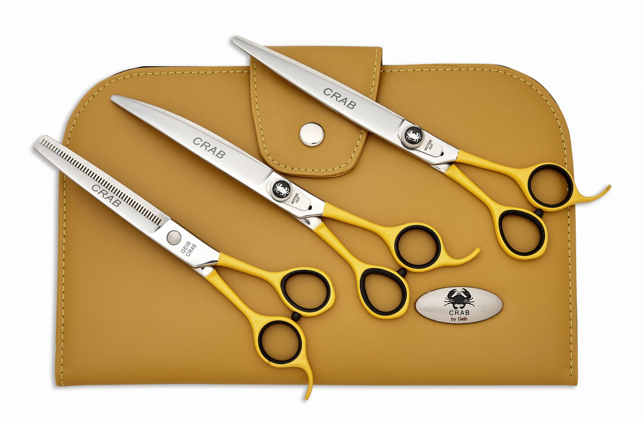 Ein Satz professioneller Pflegescheren von Geib, hergestellt aus hochwertigem japanischem rostfreiem Stahl. Geib ist eine renommierte Marke, die sich auf die Herstellung professioneller Pflegewerkzeuge spezialisiert hat, insbesondere auf Scheren und Schermaschinen für das Scheren von Tieren. Die Produkte der Marke sind von höchster Qualität und werden mit Sorgfalt hergestellt.