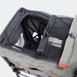Die Maße der Kabine betragen 35 x 50 x 46 cm und zusammengeklappt misst der Kinderwagen 55 x 40 x 79 cm. Zum Set gehören 2 Befestigungsgurte und eine weiche Liegefläche. Perfekt für längere Spaziergänge und Fahrten mit Ihrem Haustier.