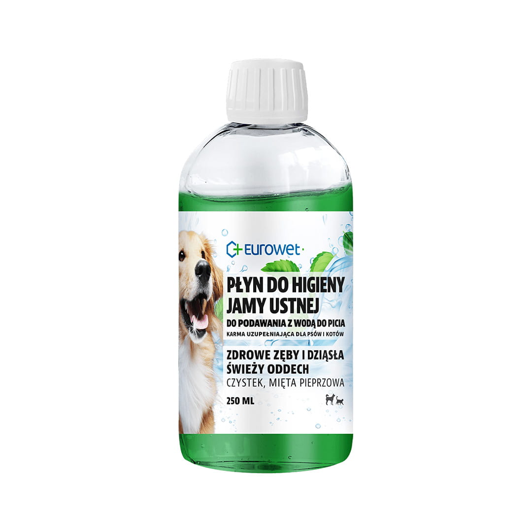 Eurowet Oral Hygiene Liquid 250 ml ist ein Tierarzneimittel in flüssiger Form, das speziell für die Mundpflege bei Hunden und Katzen entwickelt wurde. Diese Flüssigkeit unterstützt die Gesunderhaltung von Zähnen und Zahnfleisch und hilft, Mundprobleme bei Tieren zu verhindern.